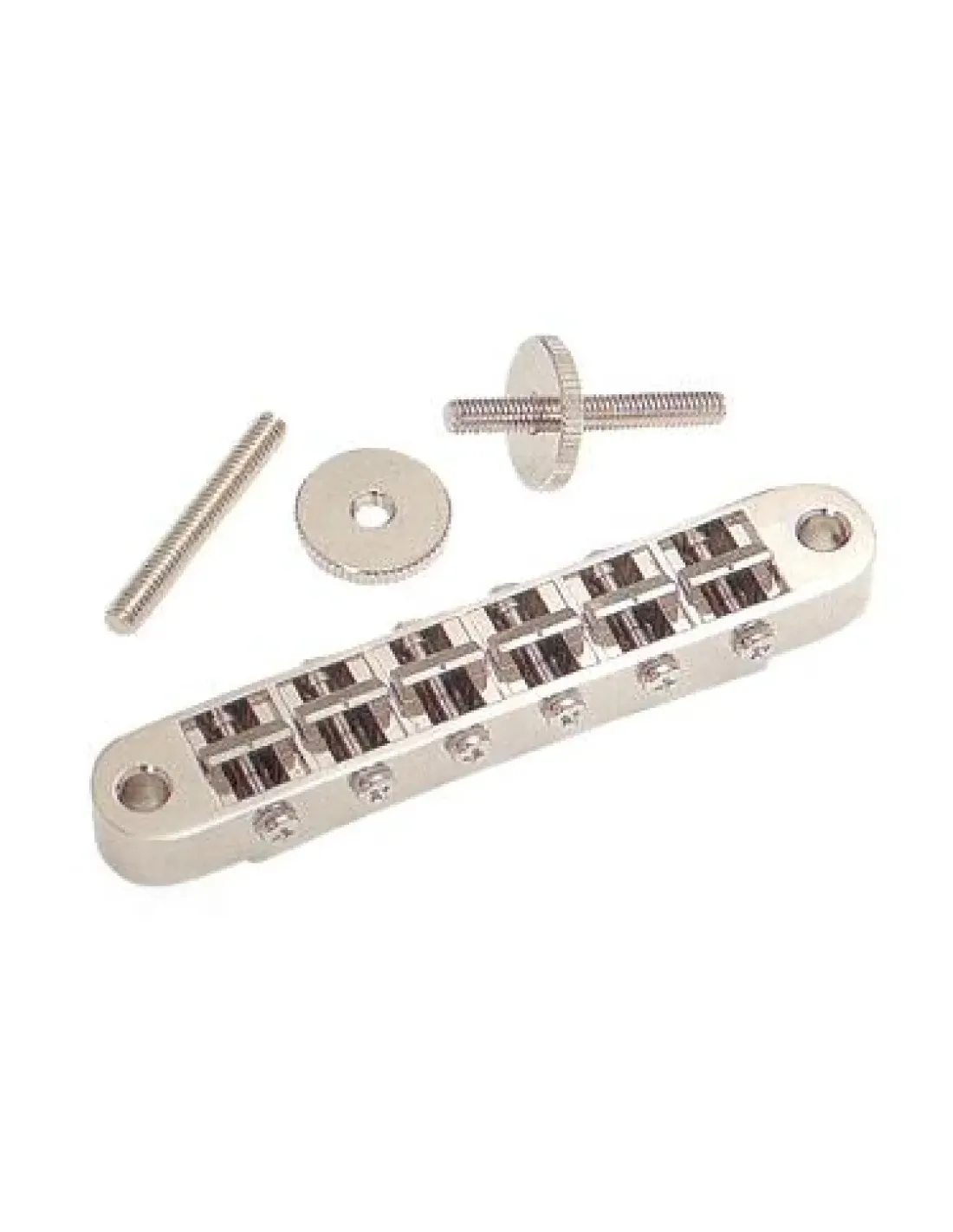 - Acabado niquelado: Este puente cuenta con un elegante acabado niquelado que no solo mejora la estética de tu guitarra, sino que también proporciona una mayor protección contra el desgaste.