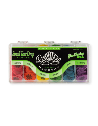 Presentamos la caja de 216 púas Dunlop 4231 Tortex Small Teardrop, ideal para aquellos guitarristas y bajistas que buscan precisión y durabilidad en cada rasgueo. Estas púas, reconocidas mundialmente por su calidad y versatilidad, combinarán perfectamente con tu práctica diaria y actuaciones en vivo.