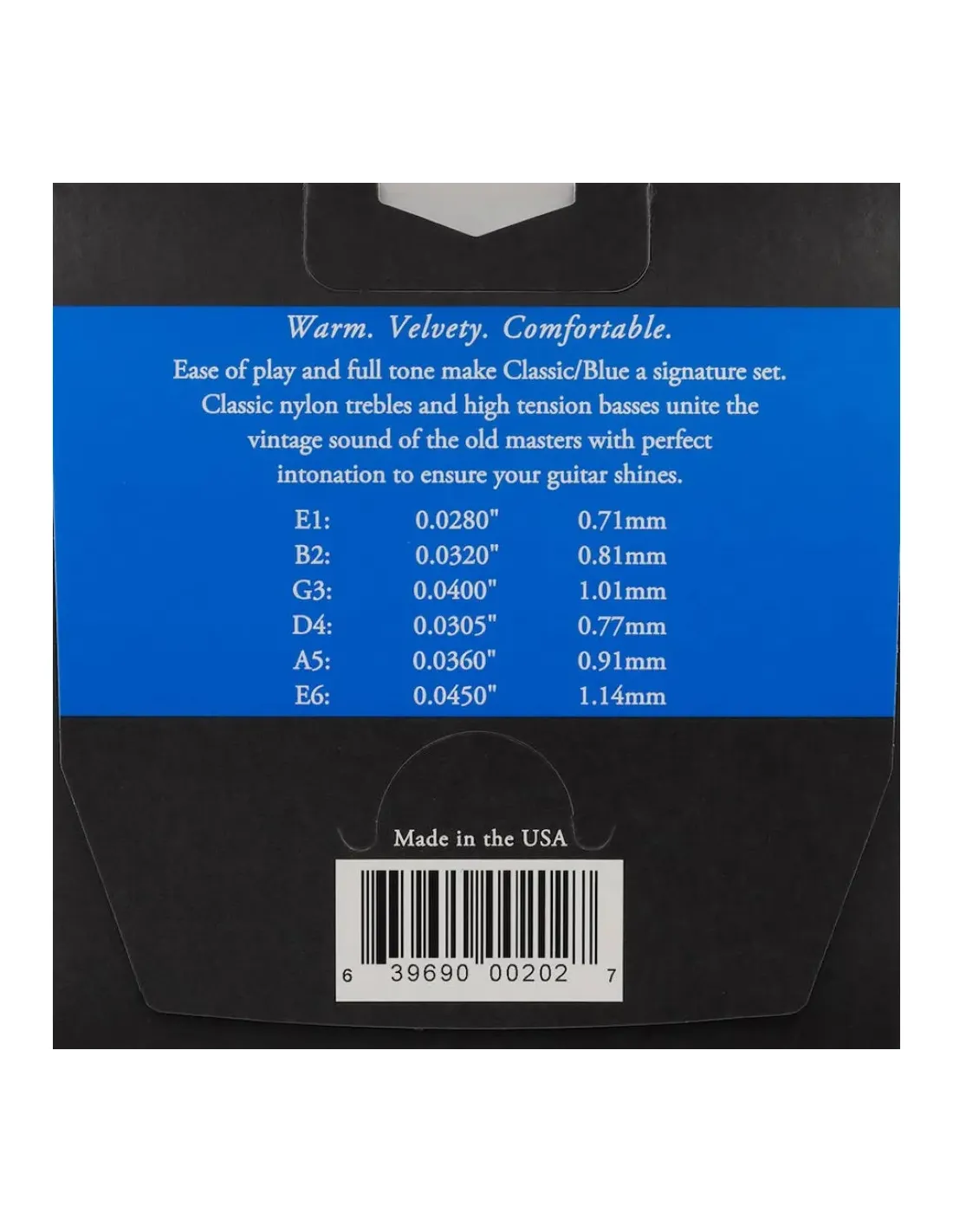 - Materiales de Alta Calidad: Las cuerdas Augustine Azul están hechas de nailon cristalino para las agudas y cobre plateado enrollado en los bordones, lo que proporciona una rica proyección sonora y una robusta durabilidad.